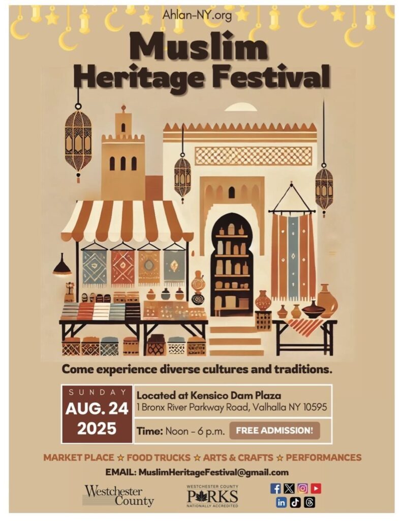 The final event in Westchester County’s cultural heritage series this year will be the Muslim Heritage Festival, on Sunday, August 24, from 12 noon to 6 p.m. at Kensico Dam Plaza in Valhalla.