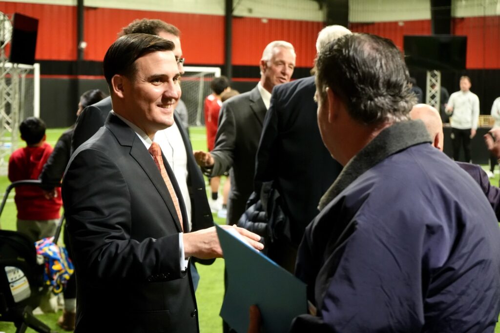 Byrne speaks from mid-field at Palumbo Soccer Academy