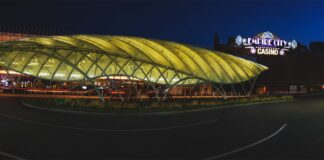 Empire City Casino by MGM Resorts shines bright in blue and yellow this month. Photo Credit: Empire...