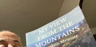Eric Schoen, with copy of My View From The Mountains, A Catskills Memoir by Patti Posner