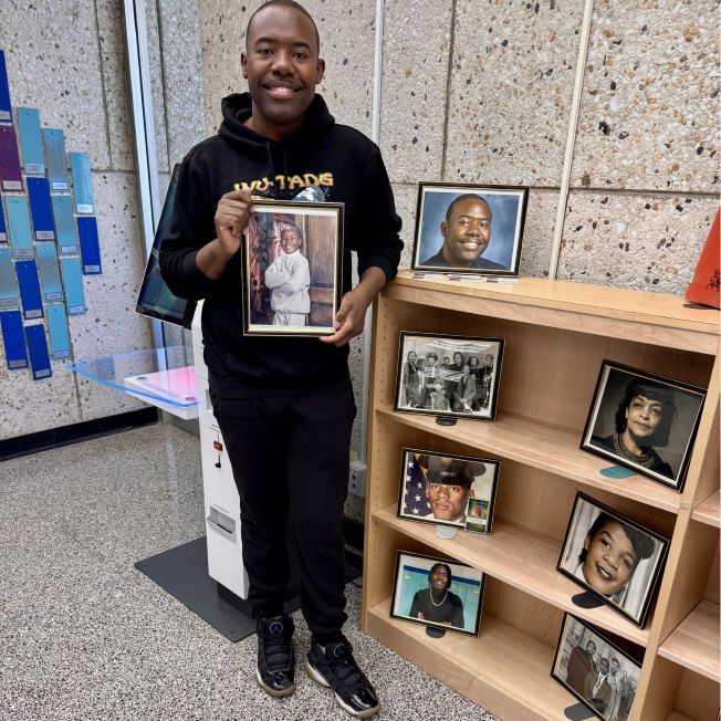 Dennis Richmond Jr. with personal photos. Photo by Hortena Richmond
