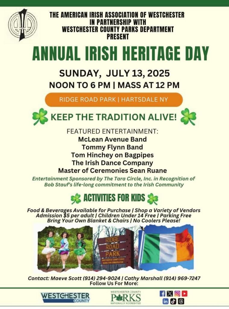 The annual Irish-American Heritage Festival returns to Ridge Road Park in Hartsdale on Sunday, July 13, from 12 noon to 6 p.m., offering a joyful celebration of Irish culture through music, dance and family-friendly fun.