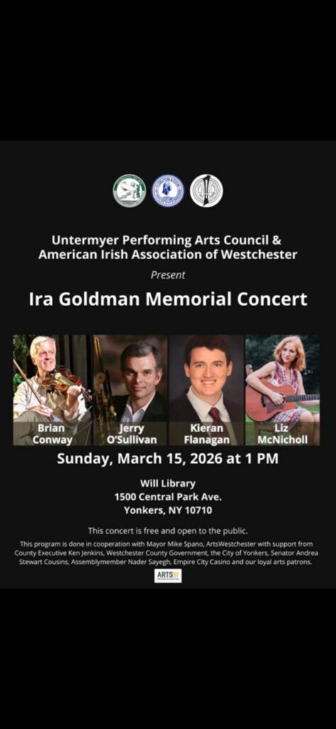 Sponsored by Untermyer Performing Arts Council & American Irish Association of Westchester