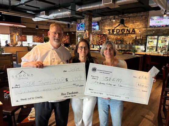 Photo: Sedona’s Bill Jablonski, STEM’s Meg Kaufer and LM Lion Diane Oldham