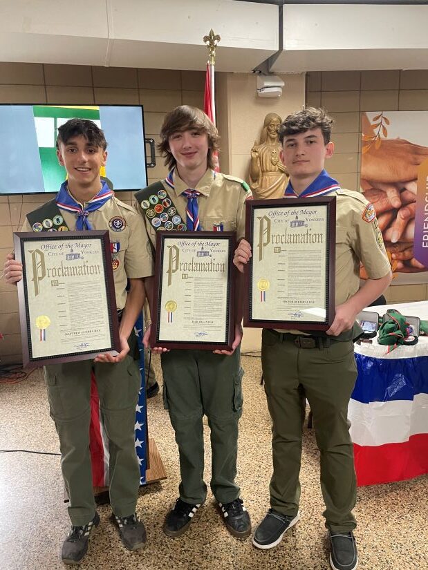Troop 12 has served the Yonkers community for over 85 years, fostering leadership, teamwork, and community service among its members.  The achievements of Viktor, Mathew, and Jack add to the troop’s proud legacy and inspire younger Scouts to strive for excellence.