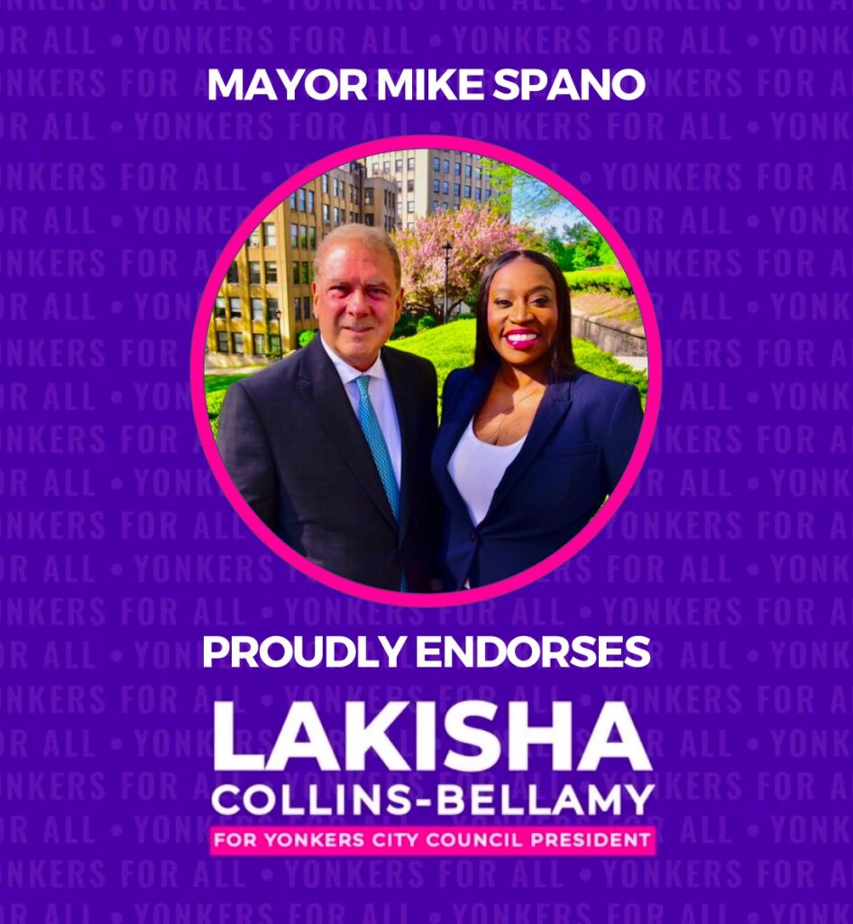 Mayor Mike Spano endorsed City Council President Lakisha Collins-Bellamy for reelection at a recent event. Mayor Spano said, “This is a really important election. And when you think about Yonkers and the direction we’re heading in, I think a lot of people say that Yonkers is finally heading in the right direction. We’re educating our kids more what we’ve ever done before.