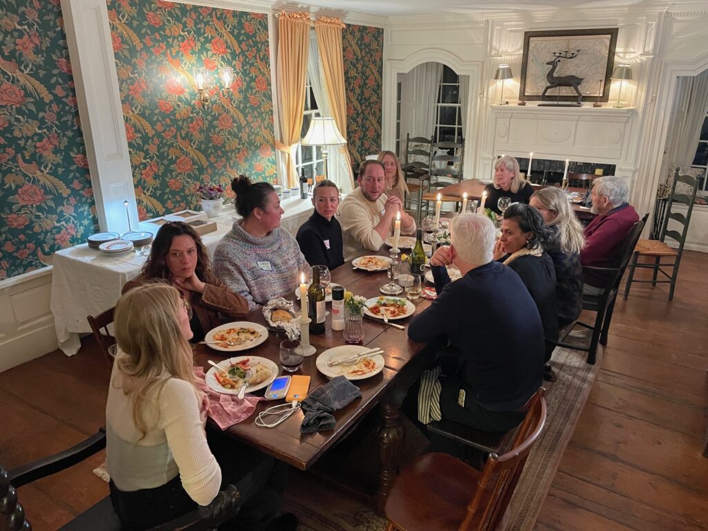 Members of host Stephanie Perrell’s group of 21 dinner guests in Bedford have already agreed to organize a baking day as their next activity-oriented get together and were extending invitations to not just other dinner guests but to people who had missed attending. This, too, was a group that “shared laughs and felt a sense of belonging around new people.” Stephanie particularly valued the “spontaneous conversations” happening among her guests and suggested that Plus One more actively promote the idea that strong community bonds form the foundation of healthy democracies.
