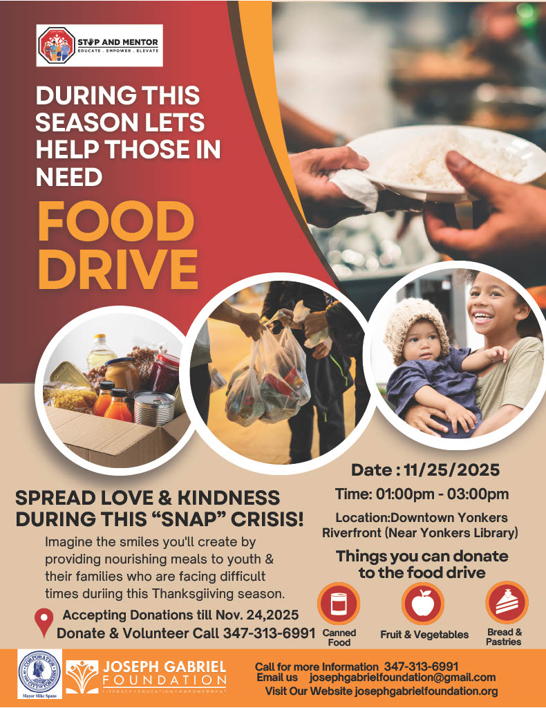 As the cost of living continues to rise, community efforts like the Joseph Gabriel Foundation’s food drive remind us that hope lives in action. Together, we can make sure every child and every family in Yonkers has a reason to give thanks this holiday season.