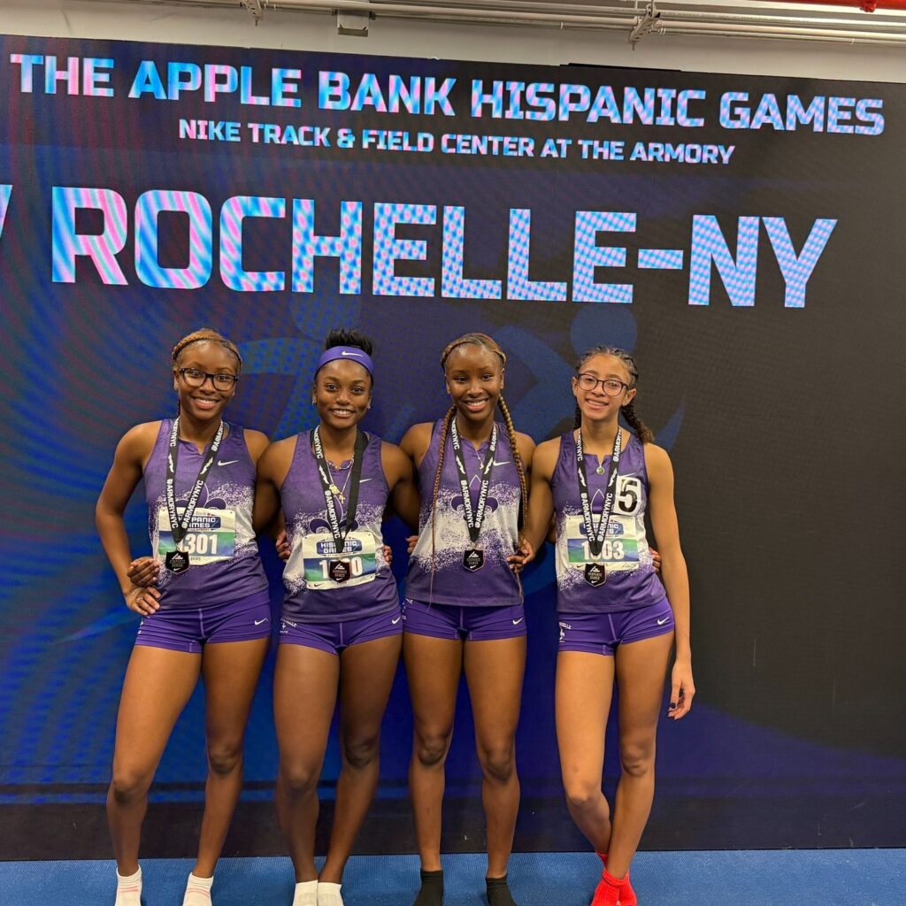 The New Rochelle High School Girls’ Varsity Track team had an incredible showing at the Hispanic Games, finishing the Spring Medley Relay with a time of 4:04.80 – 18 seconds ahead of the second-place finishers. The team took first place in the state and in the country at the January 2 event!