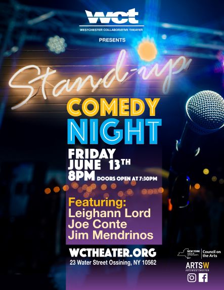 On Friday, June 13, Westchester Collaborative Theater (WCT) will present the latest in its series of highly acclaimed Comedy Nights, featuring three NYC-based stand-up comedians known nationwide through their many TV and film appearances.