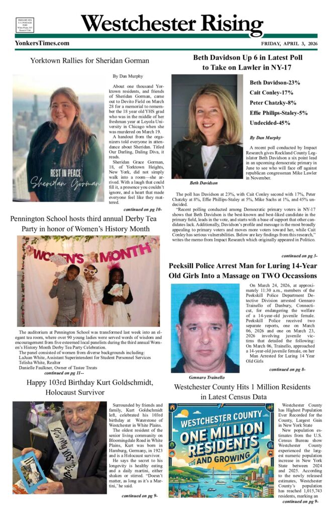 NewsNewspaper PDFs Westchester Rising April 3, 2026 PDF April 7, 2026 Facebook Twitter https://yonkerstimes.com/west-april-4lr-2/