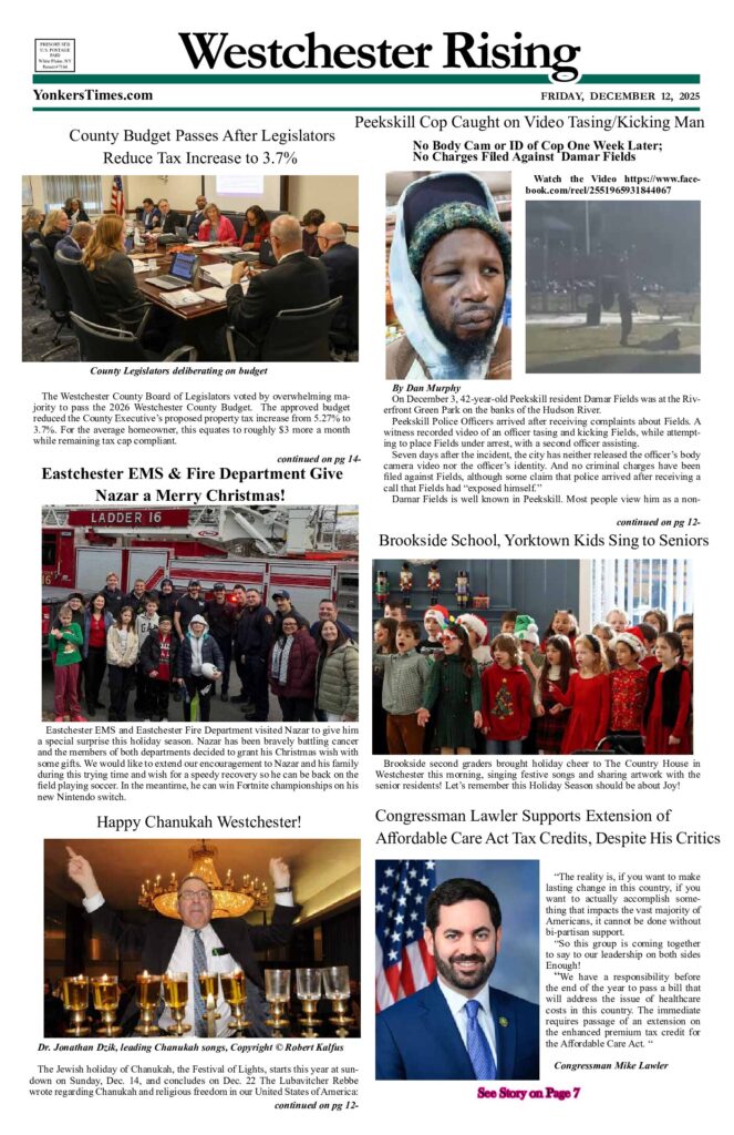 NewsNewspaper PDFs Westchester Rising December 12, 2025 PDF December 20, 2025 Facebook Twitter https://yonkerstimes.com/west-dec-12lr/