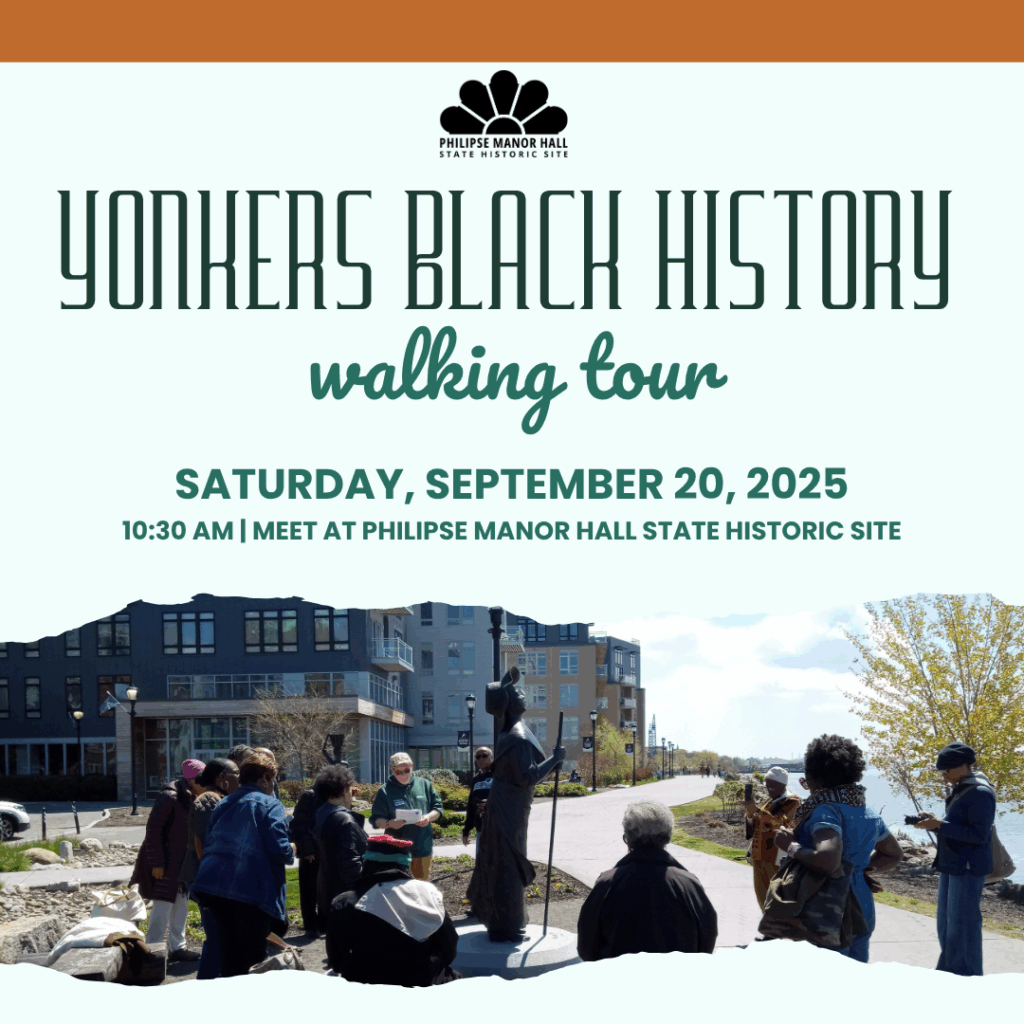 This urban hike takes a circular route of approximately 2.5 miles and departs from Philipse Manor Hall State Historic Site (located at 29 Warburton Ave., Yonkers, NY) and includes inclines and hills. Hike lasts 2-2.5 hours. Participants are encouraged to dress for the weather and wear comfortable shoes and sunscreen or a hat. Tour departs promptly at 10:30 a.m., museum opens at 10:00 a.m. Philipse Manor Hall is accessible via Hudson line train, car, or bus. You can find directions, transportation, and parking information here.