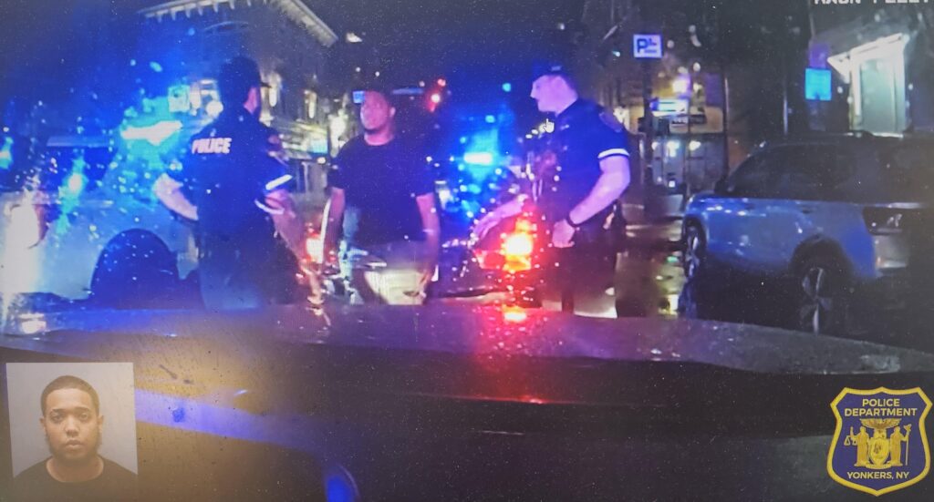 Just after 3:00 am this morning, Yonkers Police Officers approached a vehicle in the area of 219 Nepperhan Avenue after observing that the driver appeared to be sleeping, to check on his well-being. The vehicle also did not have both license plates properly affixed, and it was parked facing the wrong direction. After waking the driver, he refused to lower the windows, stared at the Officers, then accelerated his vehicle to flee. As he accelerated, he struck one of our Officers, pinning his right leg between the suspect’s vehicle and the Officer’s patrol vehicle.
