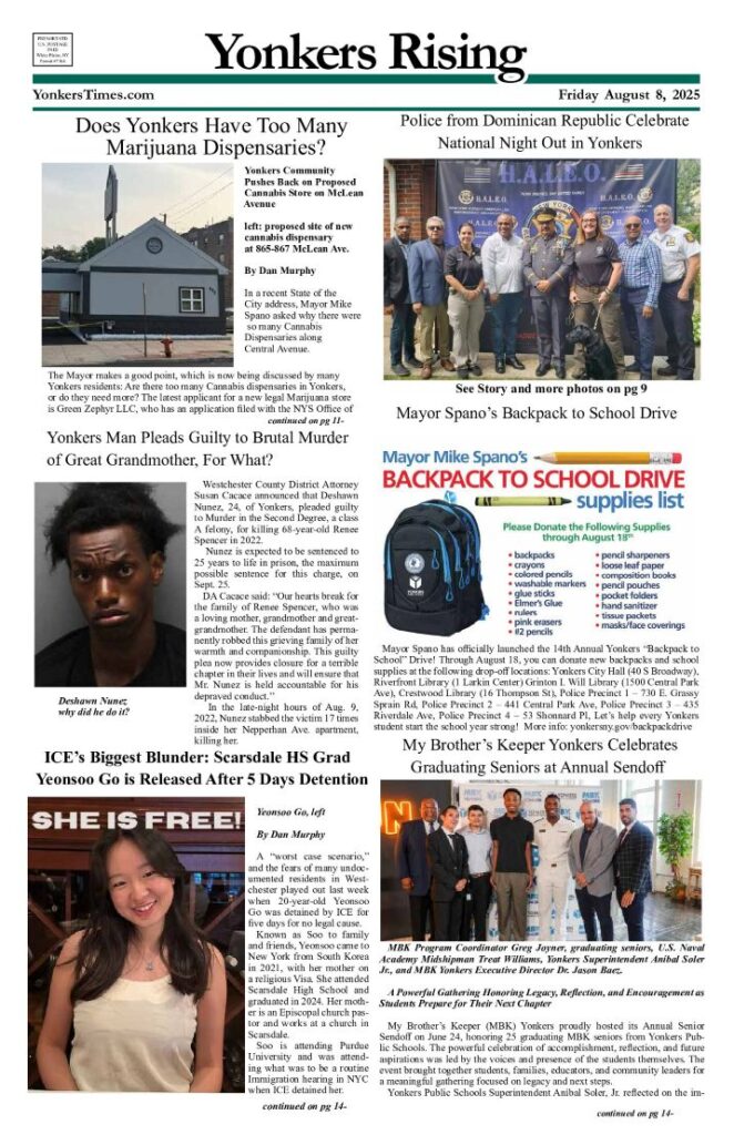 NewsNewspaper PDFs Yonkers Rising August 8, 2025 PDF September 1, 2025 Facebook Twitter https://yonkerstimes.com/yonkers-aug-8lr-2/