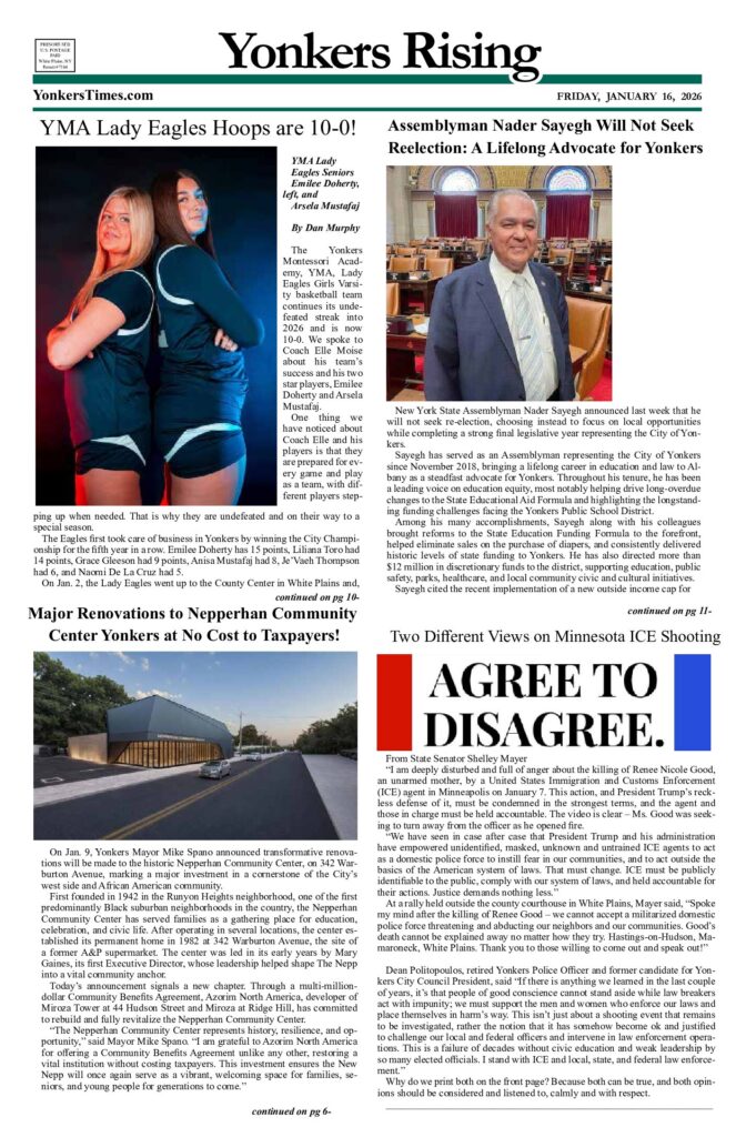 NewsNewspaper PDFs Yonkers Rising January 16, 2026 PDF February 7, 2026 Facebook Twitter https://yonkerstimes.com/wp-content/uploads/2026/02/yonkers-jan-16lr.pdf
