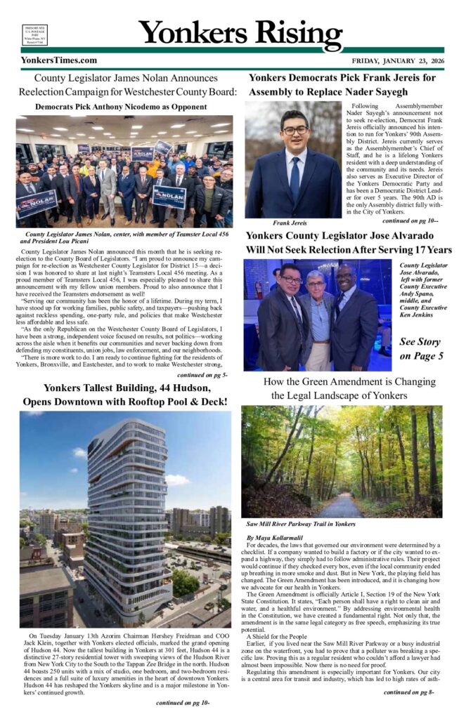NewsCommunity Yonkers Rising January 23, 2026 PDF February 7, 2026 Facebook Twitter https://yonkerstimes.com/wp-content/uploads/2026/02/yonkers-jan-23lr.pdf