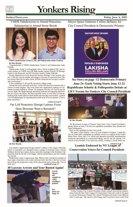 NewsNewspaper PDFs Yonkers Rising June 6, 2025 PDF July 8, 2025 Facebook Twitter : https://yonkerstimes.com/yonkers-june-6btuto/