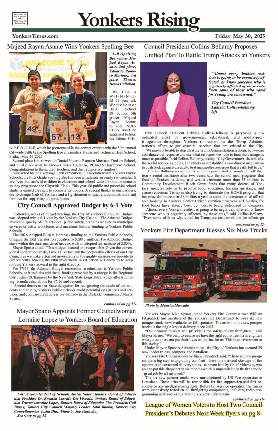 NewsNewspaper PDFs Yonkers Rising May 30, 2025 PDF July 8, 2025 Facebook Twitter https://yonkerstimes.com/yonkers-may-30-lr/